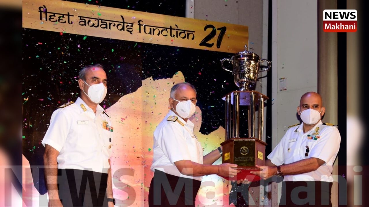 As compared to previous years, the Fleet Awards Function was held as a modest event with full observance of COVID protocols. The function culminated with the distribution of sixteen coveted trophies covering the overall spectrum of maritime operations. INS Sahyadri was adjudged as the Best Ship of the Eastern Fleet amongst Capital ships, INS Kamorta as the Most Spirited Ship for displaying indomitable spirit and grit whilst undertaking a plethora of challenging missions and Best Corvette trophy as won by IN Ships Kiltan and Khukri amongst Corvettes and similar classes of ships.