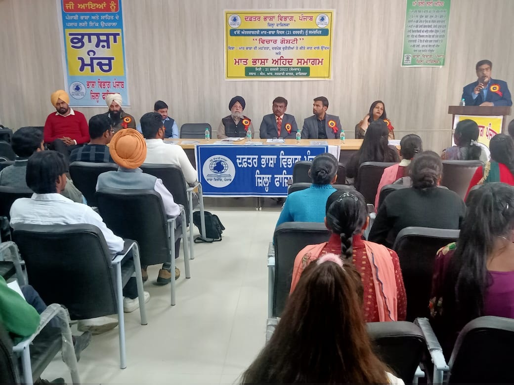 ਭਾਸ਼ਾ ਵਿਭਾਗ ਪੰਜਾਬ ਜ਼ਿਲਾ ਫਾਜ਼ਿਲਕਾ ਵੱਲੋਂ ਅੰਤਰਰਾਸ਼ਟਰੀ ਮਾਤ ਭਾਸ਼ਾ ਦਿਵਸ ਨੂੰ ਸਮਰਪਿਤ ਵਿਚਾਰ ਗੋਸ਼ਟੀ ਦਾ ਆਯੋਜਨ ਐਮ. ਆਰ ਕਾਲਜ ਵਿੱਚ ਕਰਵਾਇਆ ਗਿਆ। ਇਸ ਵਿਚਾਰ ਗੋਸ਼ਟੀ ਦਾ ਵਿਸ਼ਾ ਮਾਤ ਭਾਸ਼ਾ ਦੀ ਮਹੱਤਤਾ, ਦਰਪੇਸ਼ ਚੁਣੌਤੀਆਂ ਤੇ ਕੀਤੇ ਜਾਣ ਵਾਲੇ ਉੱਦਮ ਸੀ। ਇਸ ਮੌਕੇ ਜ਼ਿਲ੍ਹਾ ਭਾਸ਼ਾ ਅਫ਼ਸਰ ਸ੍ਰੀ ਭੁਪਿੰਦਰ ਉਤਰੇਜਾ ਨੇ ਸਮੂਹ ਹਾਜ਼ਰੀਨ ਨੂੰ ਜੀ ਆਇਆ ਆਖਿਆ। ਸਮਾਗਮ ਦੀ ਸ਼ੁਰੂਆਤ ਮਾਤ ਭਾਸ਼ਾ ਦਿਵਸ ਸਬੰਧੀ  ਇਕ ਅਹਿਦ ਲੈ ਕੇ ਕੀਤੀ ਗਈ।