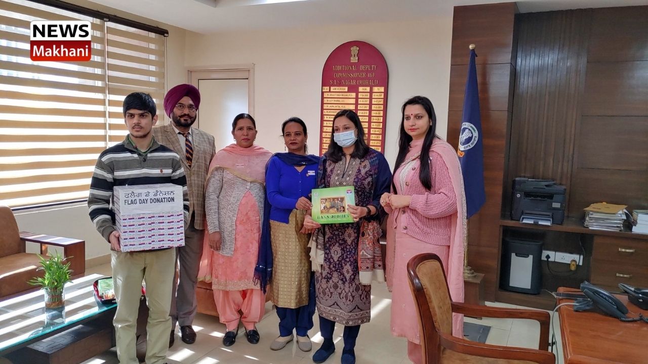 ਜ਼ਿਲ੍ਹਾ ਰੱਖਿਆ ਸੇਵਾਵਾਂ ਭਲਾਈ ਅਫ਼ਸਰ ਐਸ.ਏ.ਐਸ ਨਗਰ ਲੈਫ਼ਟੀਨੈਟ ਕਰਨਲ (ਸੇਵਾ ਮੁਕਤ) ਜਸਬੀਰ ਸਿੰਘ ਬੋਪਾਰਾਏ ਨੇ ਝੰਡਾ ਦਿਵਸ ਨੂੰ ਦੇਸ਼ ਦੀ ਖਾਤਰ ਜਾਨ ਕੁਰਬਾਨ ਤੱਕ ਕਰ ਜਾਣ ਵਾਲੇ ਸੈਨਿਕਾਂ ਪ੍ਰਤੀ ਵਚਨਬੱਧਤਾ ਦਾ ਬਿਹਤਰ ਮੌਕਾ ਕਰਾਰ ਦਿੰਦਿਆਂ, ਇਸ ਮੌਕੇ ਆਪਣੀ ਨੈਤਿਕ ਜ਼ਿੰਮੇਂਵਾਰੀ ਨਾਲ ਉਨ੍ਹਾਂ ਦੀ ਭਲਾਈ ਲਈ ਫੰਡ ਇਕੱਤਰ ਕਰਨ ਲਈ ਸਮੂਹ ਲੋਕਾਂ ਨੂੰ ਅੱਗੇ ਆਉਣ ਦਾ ਸੱਦਾ ਦਿੱਤਾ। ਇਸ ਮੌਕੇ ਉਨ੍ਹਾਂ ਦੇ ਨਾਲ ਜ਼ਿਲ੍ਹਾ ਰੱਖਿਆ ਸੇਵਾਵਾਂ ਭਲਾਈ ਦਫਤਰ ਅਤੇ ਸੈਨਿਕ ਇੰਸਟੀਚਿਊਟ ਆਫ ਮੈਨੇਜ਼ਮੈਂਟ ਐਂਡ ਟੈਕਨੋਲੋਜ਼ੀ ਦੇ ਮੁਲਾਜ਼ਮਾਂ ਵੱਲੋਂ ਵਧੀਕ ਡਿਪਟੀ ਕਮਿਸ਼ਨਰ ਸ੍ਰੀਮਤੀ ਕੋਮਲ ਮਿੱਤਲ, ਸਹਾਇਕ ਕਮਿਸ਼ਨਰ ਸ੍ਰੀ ਤਰਸੇਮ ਚੰਦ ਸਮੇਤ ਜ਼ਿਲ੍ਹਾ ਪ੍ਰਸ਼ਾਸਨ ਦੇ ਵੱਖ ਵੱਖ ਅਧਿਕਾਰੀਆਂ ਅਤੇ ਆਮ ਜਨਤਾ ਸਮੇਤ ਉਦਯੋਗਿਕ ਅਦਾਰਿਆਂ ਵਿਚ ਜਾ ਕੇ ਫਲੈਗ ਲਗਾਏ ਗਏ ।