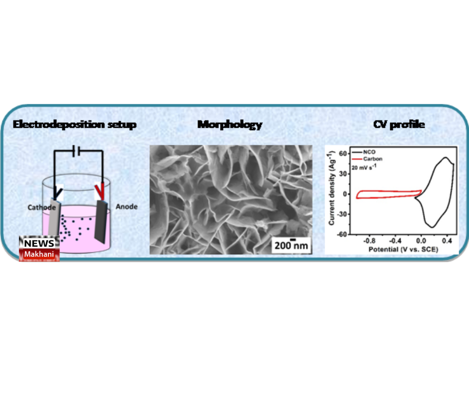 Scientists at the International Advanced Research Center for Powder Metallurgy and New Materials (ARCI), an autonomous body of the Department of Science and Technology, Government of India in collaboration with IIT Hyderabad have developed a facile, scalable, and cost-effective electrochemical route to synthesize electrodes made of Nickel cobaltite (NiCo2O4) containing nanosheet structures with incorporated oxygen vacancies as an active material, for hybrid supercapacitors. These electrodes have been found to have excellent electrochemical performance. Such hybrid supercapacitors combine the features of both conventional double layer supercapacitors and batteries and act as high power-high energy storage devices. However, it remains challenging to design pseudo capacitor devices with redox metal oxide (MO) materials with high porosity, which exhibit high capacitance and good cycle life. It is desirable to amend the intrinsic properties of the synthesized MO to enhance its conductivity, stability, and electrochemical activity.