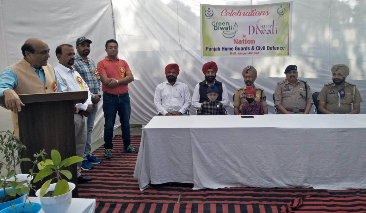ਗ੍ਰਹਿ ਮੰਤਰਾਲਾ ਭਾਰਤ ਸਰਕਾਰ ਨਾਲ ਸਬੰਧਤ ਸਿਵਲ ਡਿਫੈਂਸ ਅਤੇ ਪੰਜਾਬ ਹੋਮ ਗਾਰਡਜ਼ ਵਿਭਾਗ ਵੱਲੋਂ ਆਜ਼ਾਦੀ ਦਾ ਅੰਮਿ੍ਰਤ ਮਹਾਂਉਤਸਵ ਤਹਿਤ ਹਰੀ ਦੀਵਾਲੀ ਦਾ ਮਨਾਉਣ ਦਾ ਆਗਾਜ਼ ਕੀਤਾ ਗਿਆ ਹੈ। ਇਸ ਮੌਕੇ ਤੁਲਸੀ ਅਤੇ ਦੇਸੀ ਬੂਟੇ ਵੰਡਣ ਦੀ ਰਸਮ ਦੀ ਸ਼ੁਰੂਆਤ ਪੰਜਾਬ ਹੋਮ ਗਾਰਡਜ਼ ਅਤੇ ਸਿਵਲ ਡਿਫੈਂਸ (ਸੰਗਰੂਰ-ਬਰਨਾਲਾ) ਦੇ ਕਮਾਂਡੈਂਟ ਰਛਪਾਲ ਸਿੰਘ ਧੂਰੀ ਨੇ ਕੀਤੀ, ਜਦੋਂਕਿ ਜ਼ਿਲਾ ਪੁਲਿਸ ਮੁਖੀ ਅਲਕਾ ਮੀਨਾ ਤੇ ਡੀਐਸਪੀ ਸ੍ਰੀ ਰਾਮ ਵਿਸ਼ੇਸ਼ ਮਹਿਮਾਨ ਵਜੋਂ ਪੁੱਜੇ।