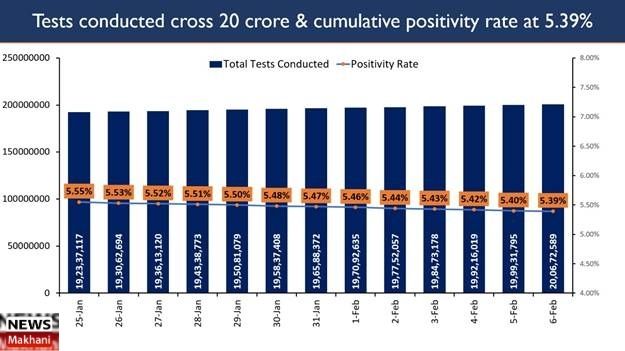 As on 06thFebruary, 2021, till 08:00 AM, total number of vaccinated beneficiaries surpassed 54 lakhs (54,16,849) under the countrywide COVID19 vaccination exercise.