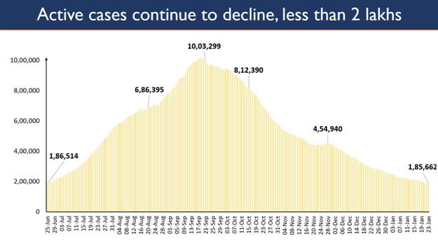 India’s Active Caseload sustained downward movement to 1.85 Lakh