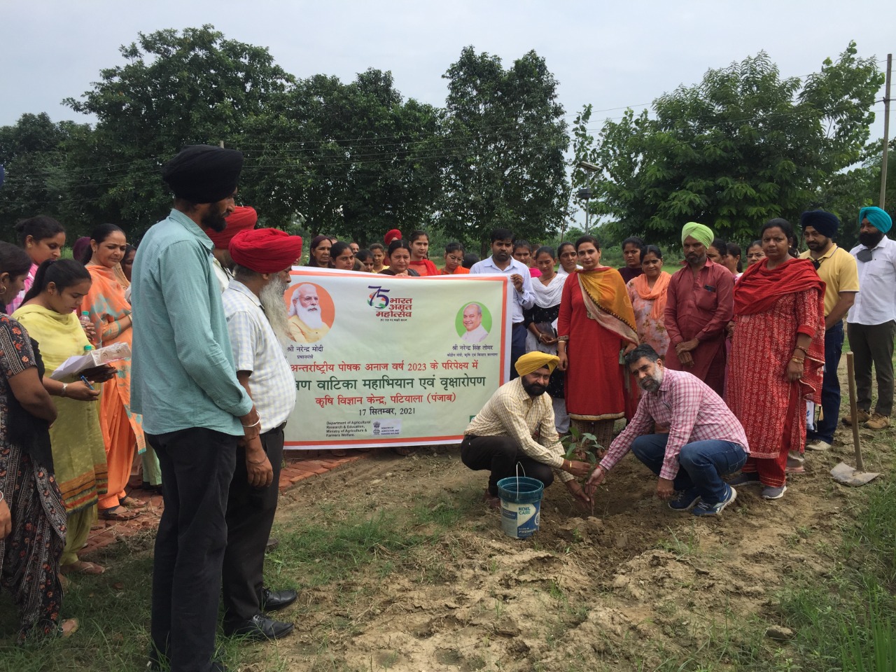 ਕ੍ਰਿਸ਼ੀ ਵਿਗਿਆਨ ਕੇਂਦਰ ਵੱਲੋਂ ਇਫਕੋ ਦੇ ਸਹਿਯੋਗ ਨਾਲ ਅੱਜ ਪੋਸ਼ਣ ਵਾਟਿਕਾ ਅਤੇ ਰੁੱਖ ਲਗਾਉਣ ਦੀ ਮੁਹਿੰਮ ਦਾ ਆਗਾਜ਼ ਕੀਤਾ ਗਿਆ। ਇਸ ਮੌਕੇ ਕਰਵਾਏ ਸਮਾਗਮ ਦੌਰਾਨ ਡਾ. ਵਿਪਨ ਕੁਮਾਰ ਰਾਮਪਾਲ ਨੇ ਪੇਂਡੂ ਆਰਥਿਕਤਾ ਨੂੰ ਮਜ਼ਬੂਤ ਕਰਨ ਦੇ ਵਿਚ ਰੁੱਖ ਲਗਾਉਣ ਦੀ ਮਹੱਤਤਾ ਸਬੰਧੀ ਜਾਣਕਾਰੀ ਦਿੰਦਿਆਂ ਦੱਸਿਆ ਕਿ ਵਾਤਾਵਰਣ ਦੀ ਸ਼ੁੱਧਤਾ ਦੇ ਨਾਲ ਨਾਲ ਆਮਦਨ ਦਾ ਵੀ ਸਰੋਤ ਹਨ। ਸਟੇਟ ਮੈਨੇਜਰ, ਇਫਕੋ ਸ੍ਰੀ ਬਹਾਦਰ ਸਿੰਘ ਨੇ ਆਪਣੇ ਪ੍ਰਧਾਨਗੀ ਭਾਸ਼ਣ ਵਿਚ ਕਿਸਾਨੀ ਦੀ ਭਲਾਈ ਵਿਚ ਇਫਕੋ ਦੇ ਯੋਗਦਾਨ ਬਾਰੇ ਜਾਣੂ ਕਰਵਾਇਆ ਅਤੇ ਰਵਾਇਤੀ ਖ਼ੁਰਾਕ ਨਾਲ ਬੱਚਿਆਂ ਨੂੰ ਜੋੜਨ ਲਈ ਪ੍ਰੇਰਿਤ ਕੀਤਾ।