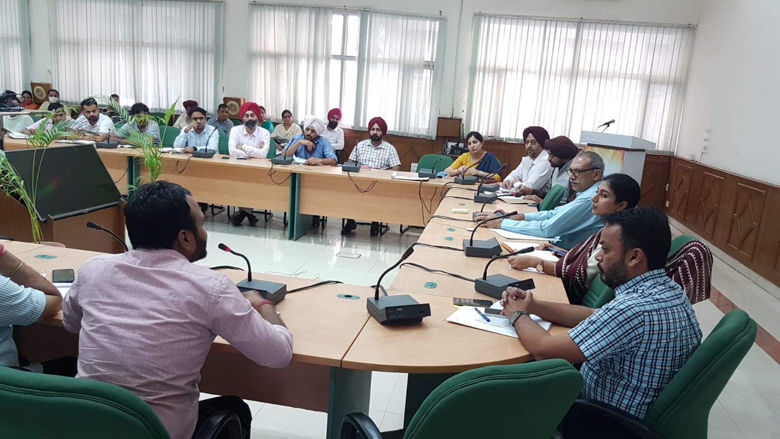 ਫੋਟੋ ਕੈਪਸ਼ਨ-ਡਿਪਟੀ ਕਮਿਸ਼ਨਰ ਸ੍ਰੀ ਸੰਦੀਪ ਹੰਸ ਜ਼ਿਲ੍ਹਾ ਪ੍ਰਬੰਧਕੀ ਕੰਪਲੈਕਸ ਵਿਖੇ ਜ਼ਿਲ੍ਹਾ ਅਧਿਕਾਰੀਆਂ ਨਾਲ ਮੀਟਿੰਗ ਕਰਦੇ ਹੋਏ।