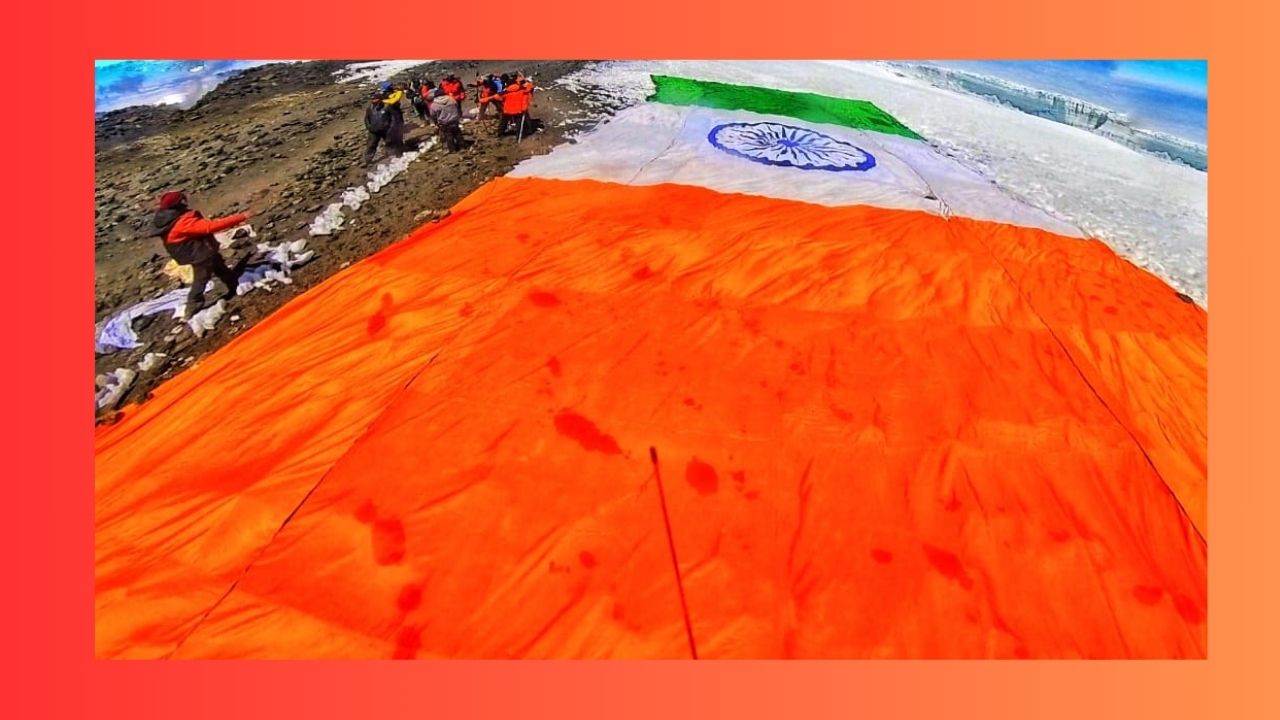 The team started their journey from the base camp, and reached Kibu Hut, situated at an altitude of 15500 feet on August 7, 2024, where they proudly displayed the national flag, measuring 7,800 square feet, with the aid of ropes, ground nets and anchors.