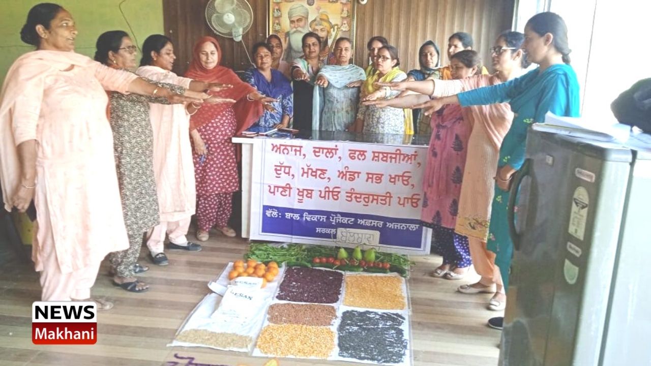 ਪੋਸ਼ਣ ਪਖਵਾੜਾ ਦੌਰਾਨ ਜਿਲ੍ਹੇ ਵਿੱਚ ਵੱਖ-ਵੱਖ ਪਿੰਡਾਂ ਵਿੱਚ ਸਮੁਦਾਇਕ ਗਤੀਵਿਧੀਆਂ ਕੀਤੀਆ ਜਾ ਰਹੀਆ ਹਨ ਅਤੇ ਲੋਕਾਂ ਨੂੰ ਪੋਸ਼ਟਿਕ ਖੁਰਾਕ ਸਬੰਧੀ ਜਾਗਰੂਕ ਕੀਤਾ ਜਾ ਰਿਹਾ ਹੈ। ਆਂਗਣਵਾੜੀ ਵਰਕਰਾਂ ਵੱਲੋਂ ਵੱਖ- ਵੱਖ ਗਤੀਵਿਧੀਆਂ ਜਿਵੇਂ ਗਰਭਵਤੀ ਔਰਤਾਂ ਦੀ ਸੁਪੋਸ਼ਣ ਗੋਦਭਰਾਈ, 6 ਮਹੀਨੇ ਦੇ ਬੱਚਿਆਂ ਦਾ ਅੰਨਪ੍ਰਾਸ਼ਨ, ਹੱਥ ਧੋਣ ਦਾ ਸਹੀ ਤਰੀਕਾ,ਸਾਫ਼ –ਸਫਾਈ, ਕਿਸ਼ੋਰੀਆਂ ਲਈ ਸਵੱਸਥ ਮਾਂਹਵਾਰੀ ਪ੍ਰਬੰਧਨ ਦੇ ਤਰੀਕੇ, ਹੈਲਦੀ ਰੈਸਪੀ ਪ੍ਰਦਰਸ਼ਨ ,ਘਰੇਲੂ ਬਗੀਚੀਆਂ ਬਣਾਉਣਾ ਅਤੇ ਵੱਖ –ਵੱਖ ਭੋਜਨ ਸਮੂਹਾਂ ਚੋਂ ਸੰਤੁਲਿਤ ਪੋਸ਼ਟਿਕ ਭੋਜਨ ਲੈਣ ਲਈ ਪ੍ਰੇਰਿਤ ਕੀਤਾ ਜਾ ਰਿਹਾ ਹੈ। ਆਂਗਣਵਾੜੀ ਵਰਕਰਾਂ ਵੱਲੋਂ ਬੱਚੇ ਦੇ ਜਨਮ ਦੇ ਪਹਿਲੇ ਇੱਕ ਹਜ਼ਾਰ ਦਿਨ ਦੀ ਮਹੱਤਤਾ ਬਾਰੇ ਵੀ ਦੱਸਿਆ ਜਾ ਰਿਹਾ ਹੈ ਕਿ ਬੱਚੇ ਦੇ ਬਿਹਤਰ ਸਰੀਰਿਕ ਅਤੇ ਮਾਨਸਿਕ ਵਿਕਾਸ ਵਿੱਚ ਮਹੱਤਵਪੂਰਨ ਯੋਗਤਾ ਪਾਉਂਦੇ  ਹਨ। ਇਸ ਦੇ ਨਾਲ ਹੀ ਗਰਭਵਤੀ ਅਤੇ ਨਰਸਿੰਗ ਮਾਂਵਾਂ ਨੂੰ ਕੁਪੋਸ਼ਣ ਅਤੇ ਅਨੀਮੀਆ ਪ੍ਰਤੀ ਜਾਗਰੂਕ ਕੀਤਾ ਜਾ ਰਿਹਾ ਹੈ  ਕਿ ਗਰਭਵਤੀ ਔਰਤਾਂ ਨੂੰ ਗਰਭ ਦੌਰਾਨ ਟੀ.ਟੀ. ਟੀਕਾਕਰਨ, ਆਇਰਨ –ਫਾਲਿਕਐਸਿਡ (IFA) ਦੀਆਂ ਗੋਲੀਆਂ ਅਤੇ ਸੰਤੁਲਿਤ ਭੋਜਨ ਲੈਣਾ ਬਹੁਤ ਜਰੂਰੀ ਹੈ। ਇੱਕ ਸਵੱਸਥ ਸਮਾਜ ਦੀ ਸਿਰਜਨਾ ਤਾਂ ਹਾ ਕੀਤੀ ਜਾ ਸਕਦੀ ਹੈ ਜੇਕਰ ਗਰਭਵਤੀ ਮਾਂ ਅਤੇ ਬੱਚੇ ਦੀ ਸਿਹਤ ਤੇ ਖੁਰਾਕ ਦਾ ਗਰਭ ਧਾਰਨ ਦੇ ਸ਼ੁਰੂ ਤੋਂ ਹੀ ਧਿਆਨ ਰੱਖਿਆ ਜਾਵੇ।