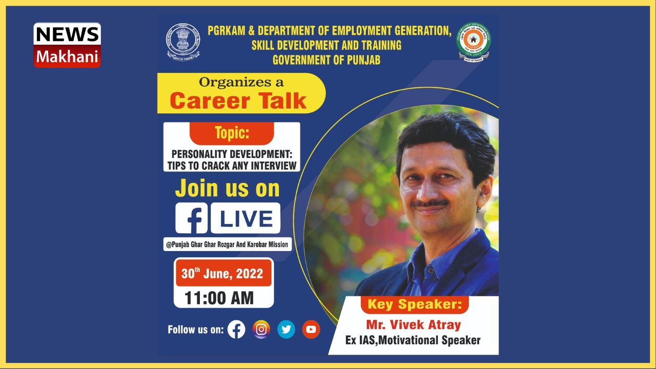 ਪੰਜਾਬ ਸਰਕਾਰ ਦੁਆਰਾ ਵੱਧ ਤੋਂ ਵੱਧ ਰੋਜ਼ਗਾਰ ਦੇ ਉਪਰਾਲੇ ਮੁਹੱਈਆ ਕਰਵਾਉਣ ਦੇ ਮੰਤਵ ਨੂੰ ਮੁੱਖ ਰੱਖਦੇ ਹੋਏ 30 ਜੂਨ, 2022 (ਵੀਰਵਾਰ) ਨੂੰ ਇੱਕ ਆਨਲਾਈਨ ਵੈਬੀਨਾਰ ਦਾ ਆਯੋਜਨ ਕੀਤਾ ਜਾ ਰਿਹਾ ਹੈ।