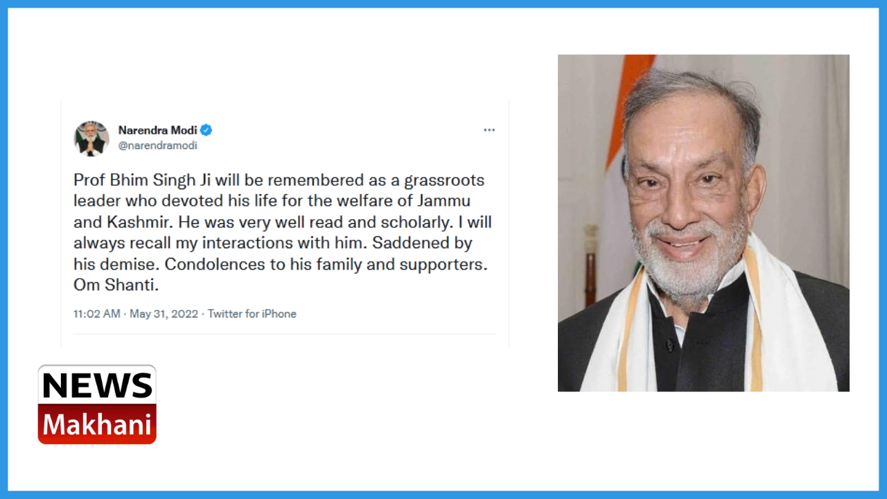 “Prof Bhim Singh Ji will be remembered as a grassroots leader who devoted his life for the welfare of Jammu and Kashmir. He was very well read and scholarly. I will always recall my interactions with him. Saddened by his demise. Condolences to his family and supporters. Om Shanti.”