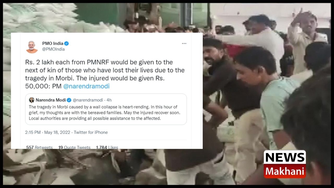 “Rs. 2 lakh each from PMNRF would be given to the next of kin of those who have lost their lives due to the tragedy in Morbi. The injured would be given Rs. 50,000: PM”