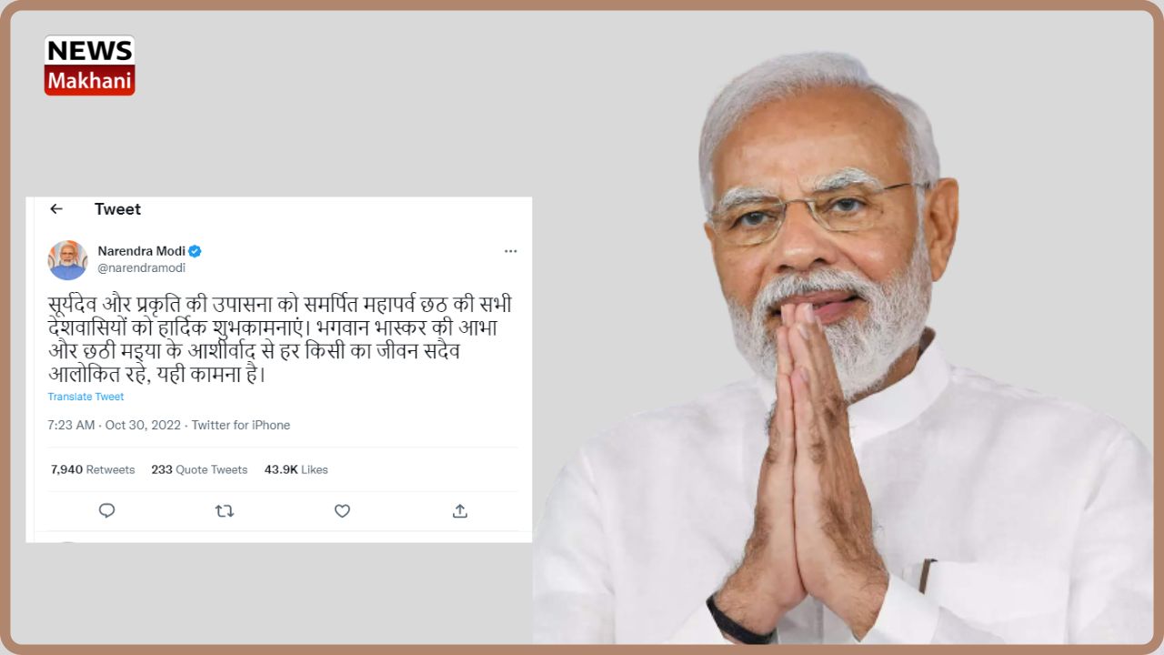 The Prime Minister, Shri Narendra Modi has greeted the nation on the occasion of Chhath Festival.