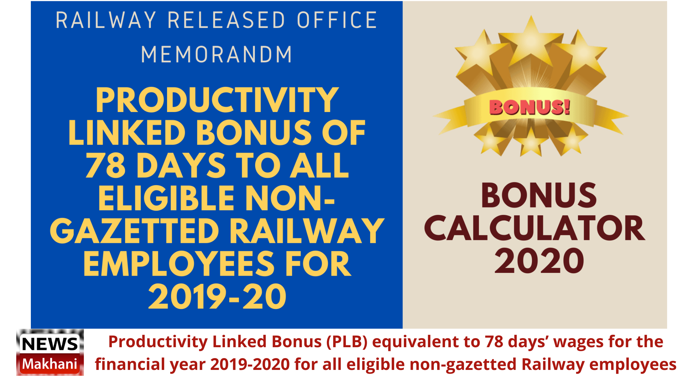 Productivity Linked Bonus (PLB) equivalent to 78 days’ wages for the financial year 2019-2020 for all eligible non-gazetted Railway employees