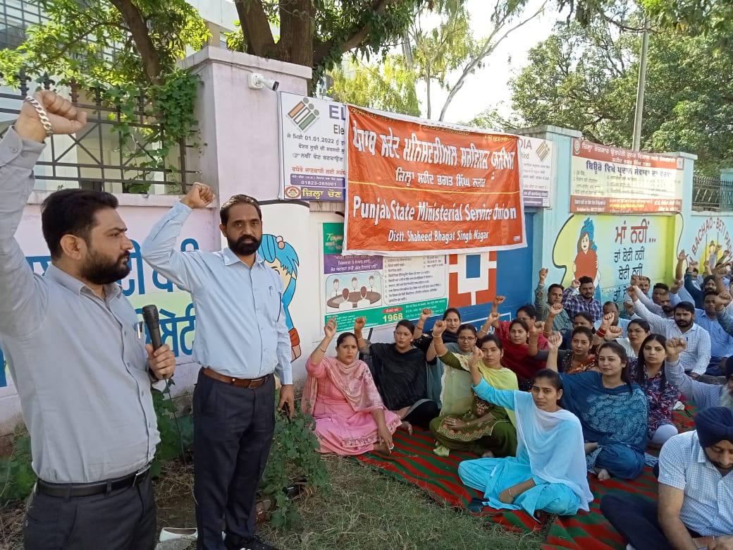 ਮਾਨਯੋਗ ਸੂਬਾ ਕਮੇਟੀ ਪੀ ਐਸ ਐਮ ਐਸ ਯੂ ਵੱਲੋਂ ਲਏ ਗਏ ਫੈਸਲੇ ਅਨੁਸਾਰ ਮਿਤੀ 08.10.2021 ਤੋਂ 31.10.2021 ਤੱਕ ਕਲਮ ਛੋੜ, ਕੰਪਿਊਟਰ ਬੰਦ, ਆਨ ਲਾਈਨ ਕੰਮ ਬੰਦ ਕੀਤਾ ਗਿਆ ਜਿਸ ਦੇ ਮੱਦੇਨਜਰ ਅਜੇ ਸਿੱਧੂ ਦੀ ਪ੍ਰਧਾਨਗੀ ਹੇਠ ਅੱਜ ਤੋਂ ਜਿਲਾ ਸ਼ਹੀਦ ਭਗਤ ਸਿੰਘ ਨਗਰ ਦੇ ਸਮੂਹ ਵਿਭਾਗਾਂ ਦੇ ਮਨਿਸਟੀਰੀਅਲ ਪ੍ਰਧਾਨਾਂ, ਜਨਰਲ ਸਕੱਤਰ ਅਤੇ ਸਮੂਹ ਸਾਥੀਆਂ ਵਲੋਂ ਸੂਬਾ ਪੀ ਐਸ ਐਮ ਐਸ ਯੂ ਦੇ ਲਏ ਗਏ ਫੈਸਲੇ ਨੂੰ ਪੂਰਨ ਰੂਪ ਵਿੱਚ ਲਾਗੂ ਕਰਦੇ ਹੋਏ ਅੱਜ ਦੁਪਹਿਰ 12.00 ਵਜੇ ਦਫਤਰ ਪੰਜਾਬ ਰੋਡਵੇਜ਼ ਸ਼ਹੀਦ ਭਗਤ ਸਿੰਘ ਨਗਰ ਵਿਖੇ ਇੱਕਠੇ ਹੋ ਕੇ ਸਰਕਾਰ ਖਿਲਾਫ ਰੋਸ਼ ਪ੍ਰਦਰਸ਼ਨ ਕੀਤਾ ਗਿਆ ਅਤੇ ਦਫਤਰ ਡਿਪਟੀ ਕਮਿਸ਼ਨਰ ਸਭਸ ਨਗਰ ਮੇਨ ਗੇਟ ਤੱਕ ਰੋਸ਼ ਰੈਲੀ ਕੱਢੀ ਗਈ, ਜਿਸ ਵਿੱਚ ਸਮੂਹ ਵਿਭਾਗਾਂ ਵੱਲੋਂ ਅਤੇ ਦਫਤਰ ਡਿਪਟੀ ਕਮਿਸ਼ਨਰ ਦੇ ਮਨਿਸਟੀਰੀਅਲ ਕਾਮਿਆਂ ਵਲੋਂ ਵਧ ਚੜ੍ਹ ਕੇ ਹਿੱਸਾ ਲਿਆ ਜਾਵੇ ਗਿਆ। ਇਸ ਮੌਕੇ ਸੁਰਜੀਤ ਸਿੰਘ ਵਲੋਂ ਮੰਚ ਸੰਚਾਲਨ ਕੀਤਾ ਗਿਆ।