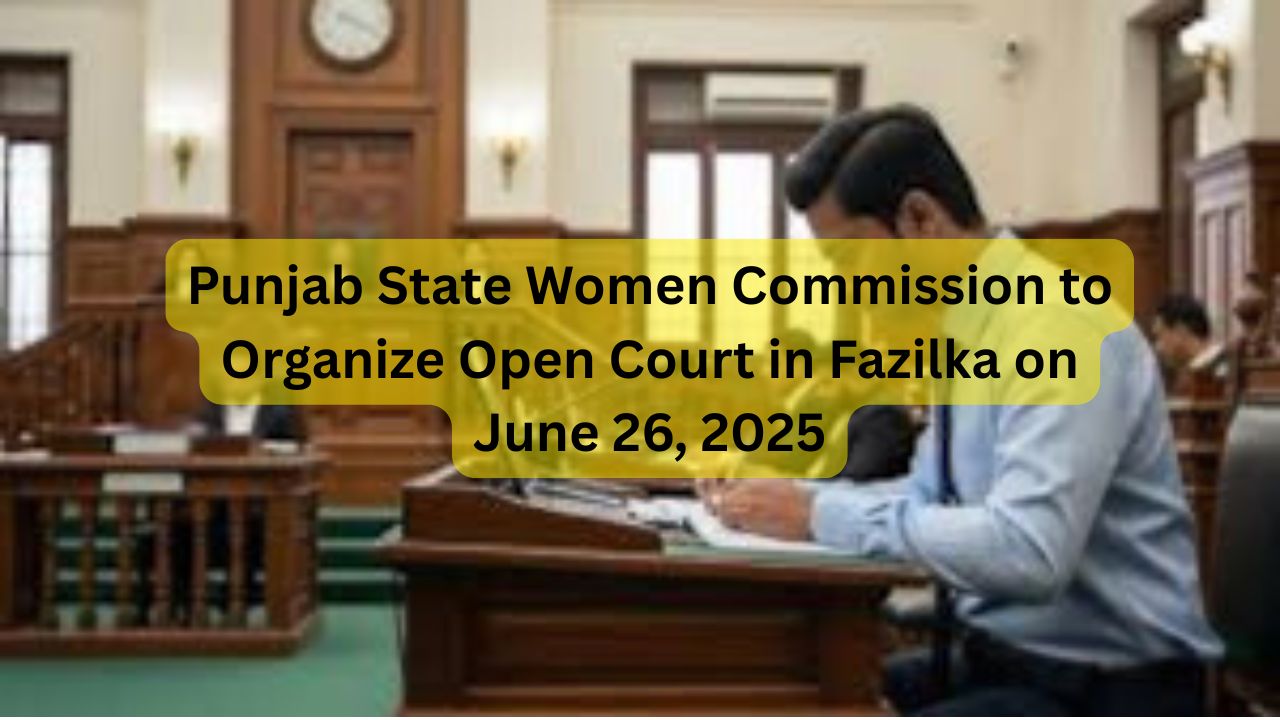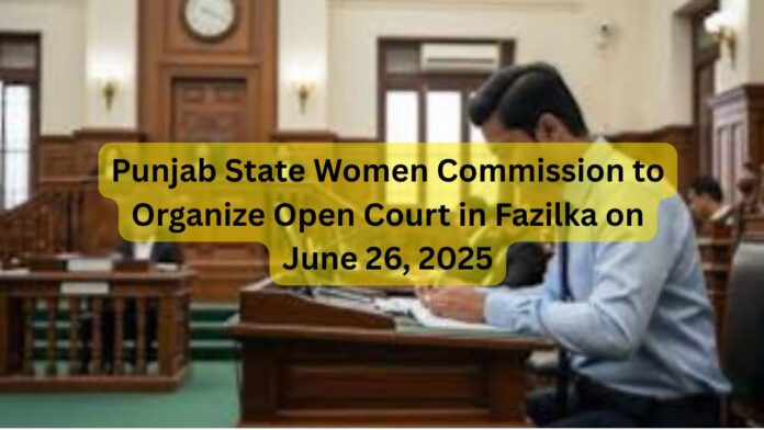 ਪੰਜਾਬ ਰਾਜ ਮਹਿਲਾ ਕਮਿਸ਼ਨ ਵੱਲੋਂ, ਚੇਅਰਪਰਸਨ ਸ੍ਰੀਮਤੀ ਰਾਜ ਲਾਲੀ ਗਿੱਲ ਦੀ ਅਗਵਾਈ ਹੇਠ, 26 ਜੂਨ 2025 (ਵੀਰਵਾਰ) ਨੂੰ ਸਵੇਰੇ 10.30 ਵਜੇ ਕਾਨਫਰੰਸ ਹਾਲ ਦਫਤਰ ਡਿਪਟੀ ਕਮਿਸ਼ਨਰ, ਫਾਜਿਲਕਾ ਵਿਖੇ ਇੱਕ ਖੁੱਲਾ ਦਰਬਾਰ/ਲੋਕ ਅਦਾਲਤ ਲਗਾਇਆ ਜਾਵੇਗਾ।