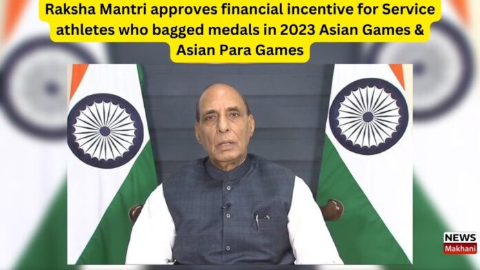 Raksha Mantri Shri Rajnath Singh has approved a financial incentive for the Armed Forces personnel who bagged medals in the 19th Asian Games and 4th Asian Para Games held in Hangzhou, China in September-October 2023. For both Asian Games as well as Asian Para Games, Gold medal winners will receive a cash reward of Rs 25 lakh each, Silver medal winners Rs 15 lakh each and Bronze medal winners Rs 10 lakh each.