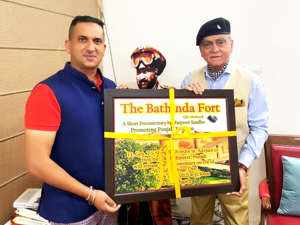 ਮੁੱਖ ਮੰਤਰੀ ਕੈਪਟਨ ਅਮਰਿੰਦਰ ਸਿੰਘ ਦੀ ਦੂਰਅੰਦੇਸ਼ ਸੋਚ ਤੋਂ ਅਗਵਾਈ ਲੈਂਦੇ ਹੋਏ ਪੰਜਾਬ ਦੀ ਸ਼ਾਨਦਾਰ ਇਤਿਹਾਸਕ ਅਤੇ ਸਭਿਆਚਾਰਕ ਵਿਰਾਸਤ ਬਾਰੇ ਪੰਜਾਬ ਦੀ ਨਵੀਂ ਪੀੜ੍ਹੀ ਨੂੰ ਪ੍ਰੇਰਿਤ ਕਰਨ ਦੇ ਉਦੇਸ਼ ਨਾਲ ਸ਼ਨਿਚਰਵਾਰ ਨੂੰ ਮੁੱਖ ਮੰਤਰੀ ਦੇ ਸੀਨੀਅਰ ਸਲਾਹਕਾਰ ਲੈਫਟੀਨੈਂਟ ਜਨਰਲ ਟੀ.ਐਸ. ਸ਼ੇਰਗਿੱਲ ਨੇ ‘ਦਿ ਬਠਿੰਡਾ ਫੋਰਟ ’ ਨਾਂ ਦੀ ਇੱਕ ਦਸਤਾਵੇਜ਼ੀ ਫਿਲਮ ਵਿਸ਼ਵ ਪੱਧਰ ’ਤੇ ਆਨਲਾਈਨ ਢੰਗ ਨਾਲ ਰਿਲੀਜ਼ ਕੀਤੀ। ਇਸ ਦੌਰਾਨ ਫਿਲਮ ਦੇ ਡਾਇਰੈਕਟਰ ਹਰਪ੍ਰੀਤ ਸੰਧੂ ਵੀ ਮੌਜੂਦ ਸਨ।