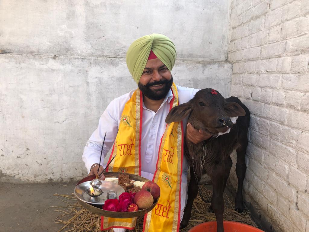 ਕੈਪਸ਼ਨ :-ਗੋਵਰਧਨ ਪੂਜਾ ਮੌਕੇ ਗਊਧਨ ਨਾਲ ਪ੍ਰੇਮ ਭਾਵ ਦਾ ਪ੍ਰਗਟਾਵਾ ਕਰਦੇ ਹੋਏ ਜ਼ਿਲਾ ਤੇ ਸੈਸ਼ਨ ਜੱਜ ਕੰਵਲਜੀਤ ਸਿੰਘ ਬਾਜਵਾ।
