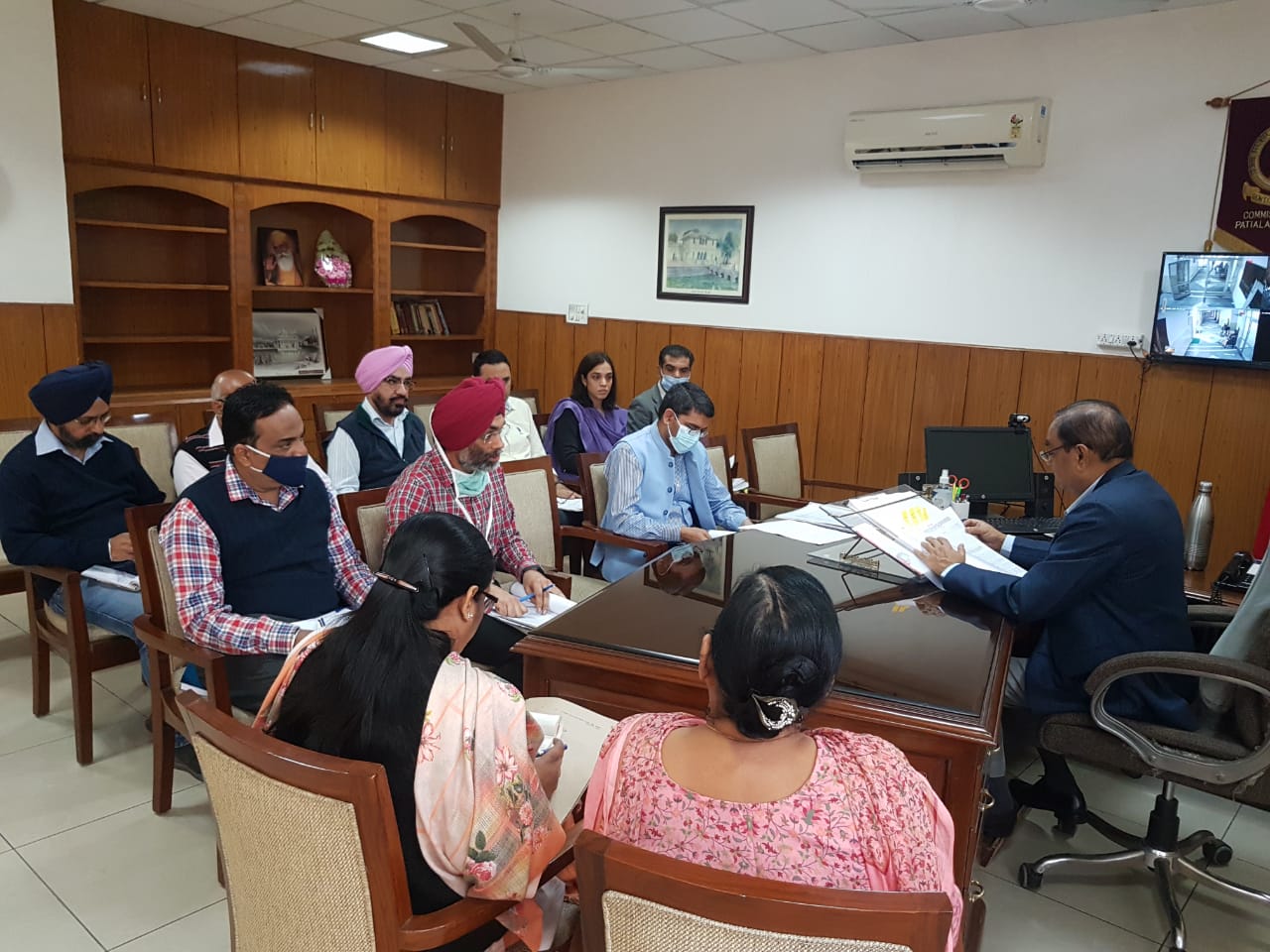 ਪਟਿਆਲਾ ਡਵੀਜਨ ਦੇ ਕਮਿਸ਼ਨਰ ਸ੍ਰੀ ਚੰਦਰ ਗੈਂਦ ਡਿਪਟੀ ਕਮਿਸ਼ਨਰ ਸੰਗਰੂਰ ਰਾਮਵੀਰ ਅਤੇ ਈ.ਆਰ.ਓਜ਼ ਨਾਲ ਮੀਟਿੰਗ ਕਰਦੇ ਹੋਏ।
