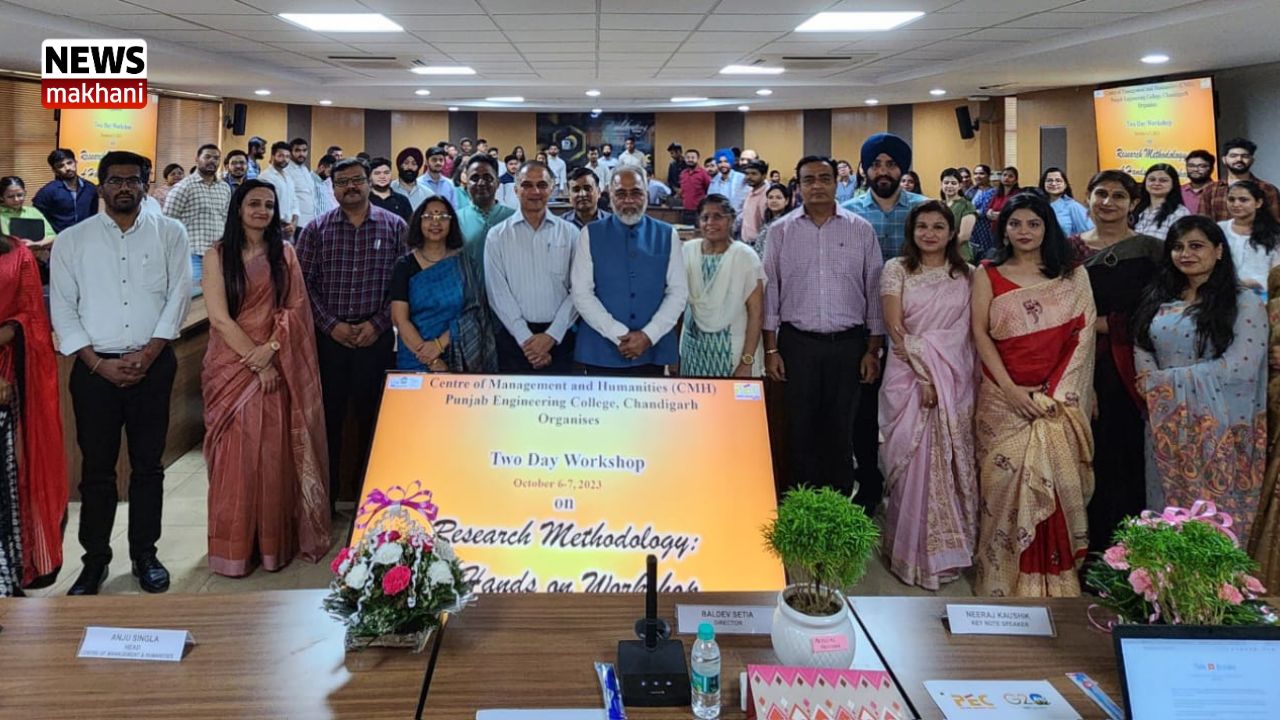 A renowned academician and researcher Dr. Neeraj Kaushik, Head and Associate Professor, Department of Business Management, NIT Kurukshetra graced the premises of Punjab Engineering College, Chandigarh as a resource person at a two-day workshop titled, “Research Methodology: A Hands-on Workshop” organized by the Centre of Management and Humanities on 6-7 October 2023.The workshop aims to develop an understanding of the research methodology, tools, and techniques including the latest Artificial Intelligence (AI) tools to conduct impactful research.