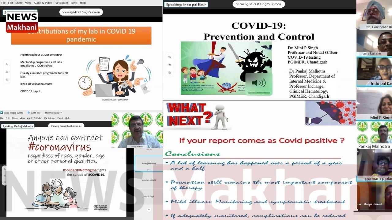 Professor Mini P Singh,Department of Virology, PGIMER gave an explicit overview of COVID 19, covering key points like, when and how to mask; proper ways of wearing masks; prone exercise; home care for people with suspected and confirmed infections, busting myths about vaccination. She said that masks with exhalable valves are not good whereas cloth plus surgical masks provide 85% protection. She also covered public dealing during pandemic and protocols to be followed when entering house.