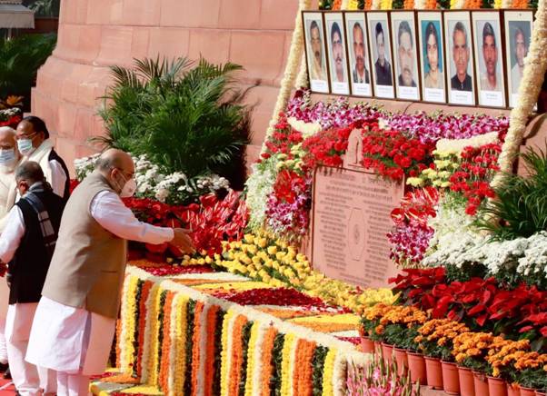 Union Home Minister Shri Amit Shah today paid floral tributes to the brave Martyrs who laid down their lives while protecting the Parliament House in the 2001 terrorist attack. In his tweet to mark the 19th Anniversary of the dastardly attack, Shri Amit Shah said, “My homage to the brave sons of Mother India, who made the supreme sacrifice defending the 2001 cowardly terrorist attack on the temple of democracy, the Parliament House. A grateful nation will always remain indebted to your martyrdom.” “I bow to their exemplary courage and sacrifice,” he added.