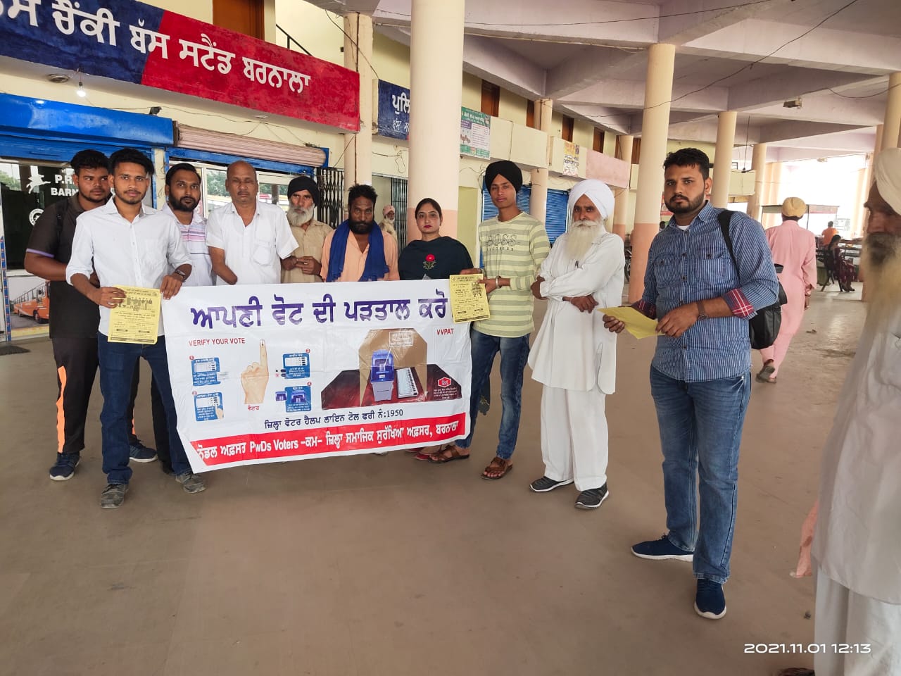 ਇਸ ਤਹਿਤ ਜ਼ਿਲਾ ਸਮਾਜਿਕ ਸੁਰੱਖਿਆ ਅਫਸਰ ਬਰਨਾਲਾ ਡਾ. ਤੇਆਵਾਸਪ੍ਰੀਤ ਕੌਰ ਦੀ ਅਗਵਾਈ ਹੇਠ ਟੀਮ ਵੱਲੋਂ ਬੱਸ ਸਟੈਂਡ ਬਰਨਾਲਾ ਵਿਖੇ ਵੋਟਰਾਂ ਅਤੇ ਹੋਰ ਲੋਕਾਂ ਨੂੰ 20 ਅਤੇ 21 ਨਵੰਬਰ ਨੂੰ ਲੱਗਣ ਵਾਲੇ ਵਿਸ਼ੇਸ਼ ਕੈਂਪਾਂ ਅਤੇ ਵੋਟਰ ਹੈਲਪਲਾਈਨ ਨੰਬਰ ਅਤੇ ‘ਵੋਟਰ ਹੈਲਪਲਾਈਨ’ ਐਪ ਬਾਰੇ ਜਾਗਰੂਕ ਕੀਤਾ ਗਿਆ। ਇਸ ਮੌਕੇ ਦੱਸਿਆ ਗਿਆ ਕਿ ਨਵੀਂ ਵੋਟ ਬਣਵਾਉਣ ਜਾਂ ਕਟਵਾਉਣ ਜਾਂ ਸੋਧ ਲਈ 30 ਨਵੰਬਰ 2021 ਤੱਕ ਫਾਰਮ ਭਰੇ ਜਾ ਸਕਦੇ ਹਨ। ਹੋਰ ਜਾਣਕਾਰੀ ਲਈ ਟੌਲ ਫ਼੍ਰੀ ਵੋਟਰ ਹੈਲਪਲਾਈਨ ਨੰਬਰ 1950 ’ਤੇ ਸੰਪਰਕ ਕੀਤਾ ਜਾ ਸਕਦਾ ਹੈ।