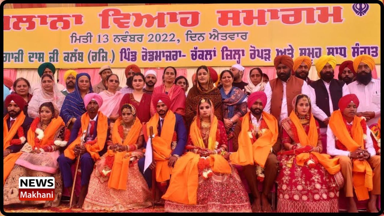 ਰੂਪਨਗਰ, 13 ਨਵੰਬਰ :- ਬਾਬਾ ਗਾਜੀਦਾਸ ਕਲੱਬ ਰੋਡਮਾਜਰਾ ਚੱਕਲਾਂ ਵਲੋਂ ਗ੍ਰਾਮ ਪੰਚਾਇਤ ਅਤੇ ਇਲਾਕਾ ਵਾਸੀਆਂ ਦੇ ਸਹਿਯੋਗ ਨਾਲ ਲੋੜਵੰਦ ਪਰਿਵਾਰਾਂ ਦੇ ਜੋੜਿਆਂ ਲਈ ਸਲਾਨਾ ਸਮੂਹਿਕ ਵਿਆਹ ਸਮਾਗਮ ਸਟੇਡੀਮਮ ਵਿਖੇ ਕਰਵਾਏ ਗਏ।