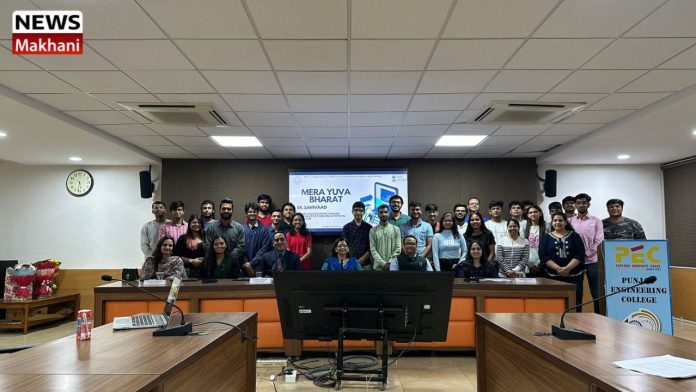 A panel discussion, “Mera Yuva Bharat,” recently held at Punjab Engineering College, Chandigarh on 30th October, 2023 which was graced by Saurav Khurana (former Deputy Advocate General Punjab); and Dr. Tanveen Kaur Gill (medical professional); Prof. Vasundhara Singh (Dean of Faculty Affairs); Prof. Arun Kumar Singh (Head SRIC), Prof. Amandeep Kaur, Prof. Nidhi Tanwar and Prof. Mayank Gupta.
