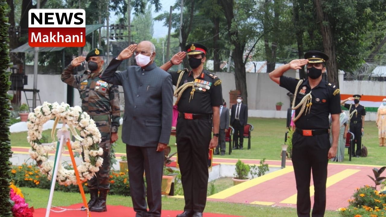 The Hon’ble President of India, Shri Ram Nath Kovind visited Baramulla as a Chief Guest on the 22nd anniversary of Kargil Vijay Diwas. The Hon’ble President of India was accompanied by the Lieutenant Governor of the Union Territory of Jammu and Kashmir, Shri Manoj Sinha and Lieutenant General DP Pandey, General Officer Commanding Chinar Corps. He paid homage to the indomitable courage and sacrifice of Indian Armed Forces personnel during Kargil conflict in 1999 by laying wreath at the Dagger War Memorial in Baramulla in a solemn ceremony.