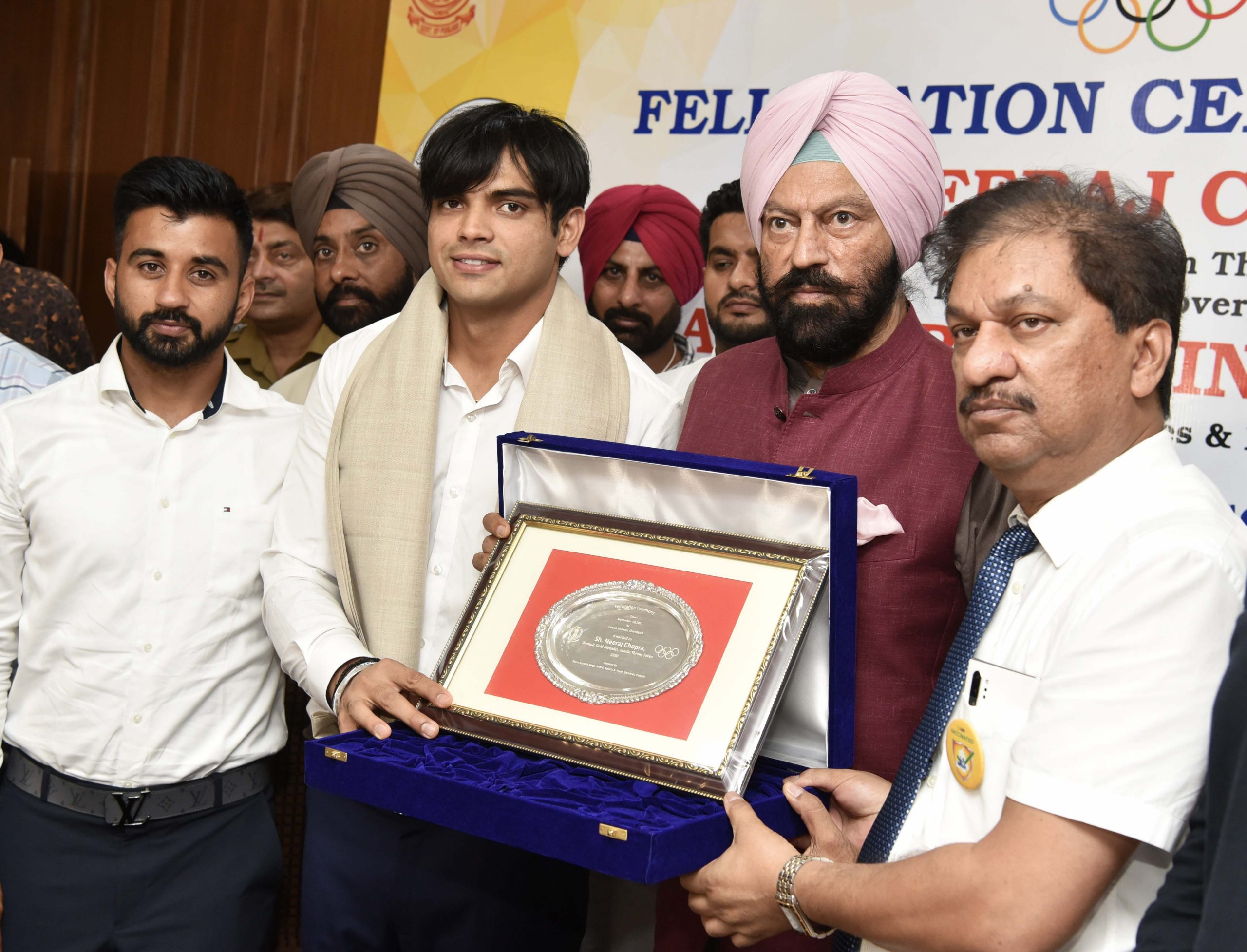 Punjab Sports Minister Rana Gurmit Singh Sodhi, on Wednesday, awarded cash prizes to Tokyo Olympic gold medalist javelin thrower Neeraj Chopra and Jakarta Para-Asian Games-2018 bronze medalist Gurlal Singh.