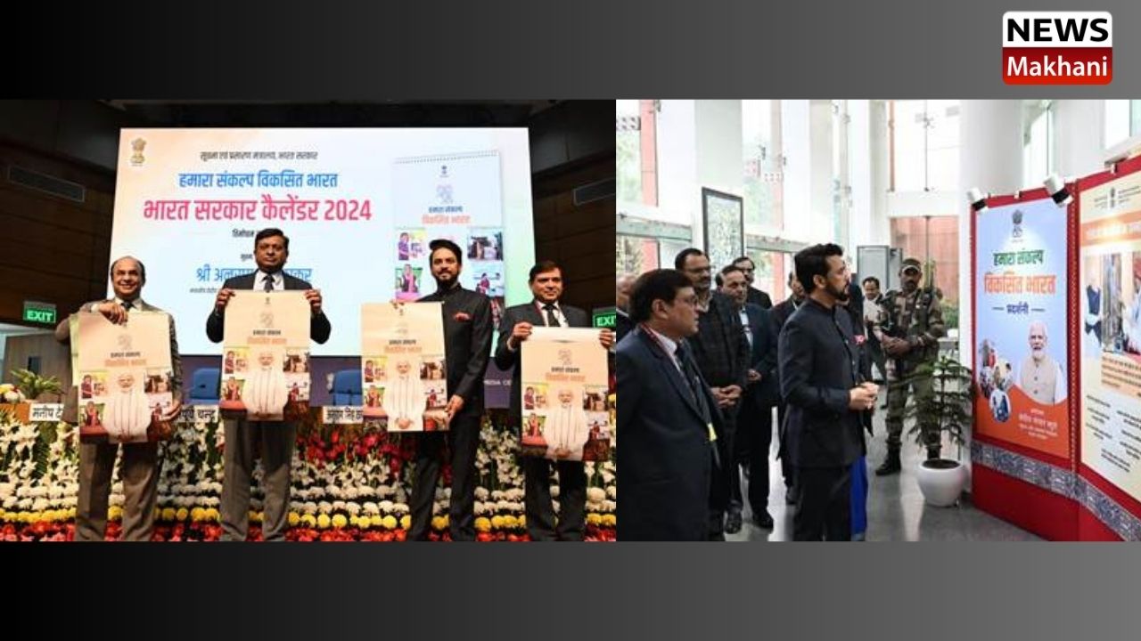 Union Minister Shri Anurag Singh Thakur today launched the Government of India calendar 2024 with the theme of “Hamara Sankalp Viksit Bharat”. The calendar 2024 depicts the social, cultural and economic transformation brought about in the lives of the people of India through the design of people friendly policies and implementation of the schemes and initiatives under the visionary leadership of Prime Minister Narendra Modi. Speaking on the occasion the Minister recalled the numerous achievements of the Government, images related to which adorn pages of the calendar.