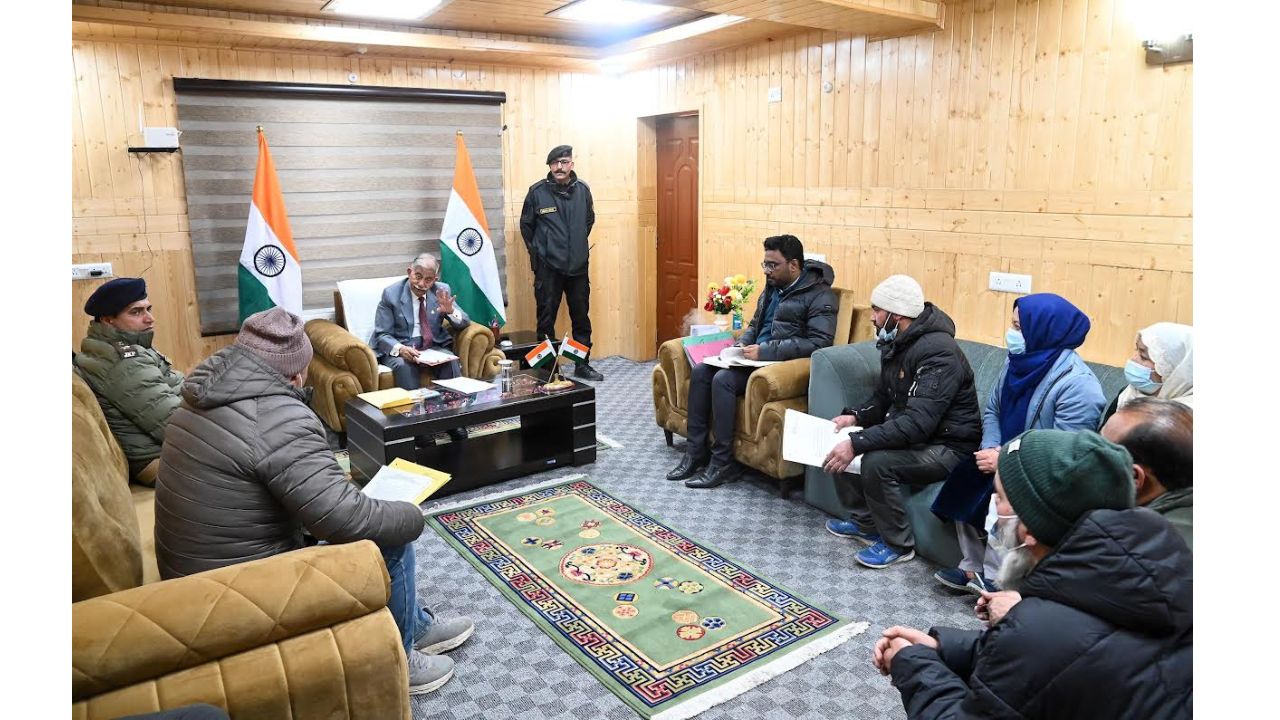 The Hon’ble Lieutenant Governor addressed the demands of Multi-purpose Health Workers of NHM regarding release of performance incentives at par with Community Health Officers (CHO). He then gave instructions that the aggrieved persons should be made to meet Managing Director, NMH-Ladakh so that the matter can be looked into as per the established rules.