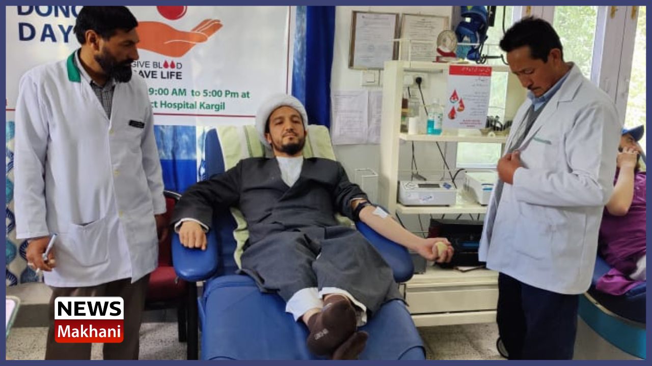 A day-long blood donation camp has held at the district hospital in which hundreds of blood donors including Executive Councilor Works, LAHDC, Kargil Aga Syed Abbas Razvi, President Jamiat Ul Ulama Isna Asharia Kargil Sheikh Naazir Ul Mehdi and various civil society members participated in the blood donation drive.